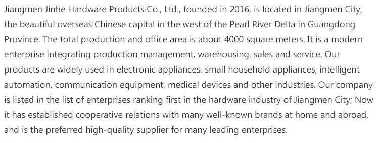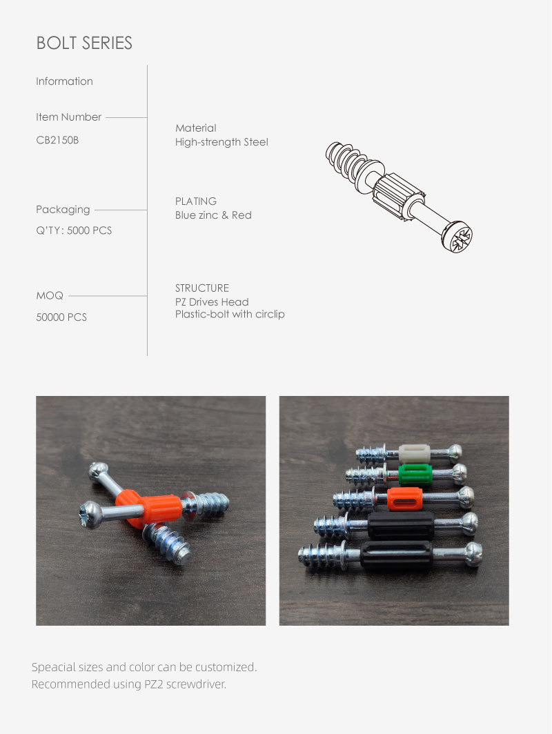 Описание товараНазвание товараСоединительные болтыНазвание брендаJinheРазмерΦ6.1x39mmДлина39mmДиаметр резьбыΦ6.1МатериалУглеродистая сталь + пластикПоверхностная обработкаЦинк / никель (настраивается)Форма головкиПотайная головкаФункцияМебельные соединительные элементыИндивидуальные услугиПоддержка OEM и ODMРекомендуемые товарыИнформация о компанииСертификатыУпаковка товараЧасто задаваемые вопросыВ: Как долго длится ваша доставка? О: Если товар есть в наличии, то обычно в течение 7 дней. Если товара нет в наличии, то 10-30 дней, рассчитывается по количествуВ: Можете ли вы предоставить мне образец? О: Да, мы можем отправить вам образцы бесплатно, но вы оплачиваете стоимость доставки.В: Вы торговая компания или производитель? О: Мы являемся заводом. Площадь завода более 10000 квадратных метров, цеха по производству пластиковых и металлических инструментов, литье под давлением, покраска пластика. Мы используем сырье для производства необходимой вам продукции, включая цинковый сплав, железо и пластик.В: Можете ли вы производить продукцию по моим чертежам или образцам? О: Да, вам необходимо предоставить образцы или чертежи и материал изделия. Мы изготовим необходимую вам продукцию в соответствии с вашими требованиями.